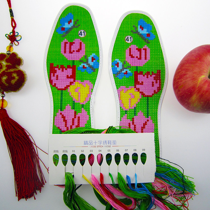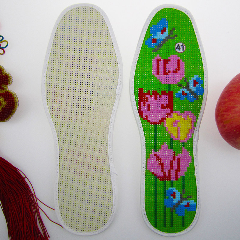 Precision embroidered full cotton embroidery cross embroidered insole pinhole semi-finished product handmade male and female deodorant suction insole