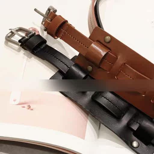 Korean modern European and American style leather rivet splicing all-match girdle fashion wide belt 2 colors