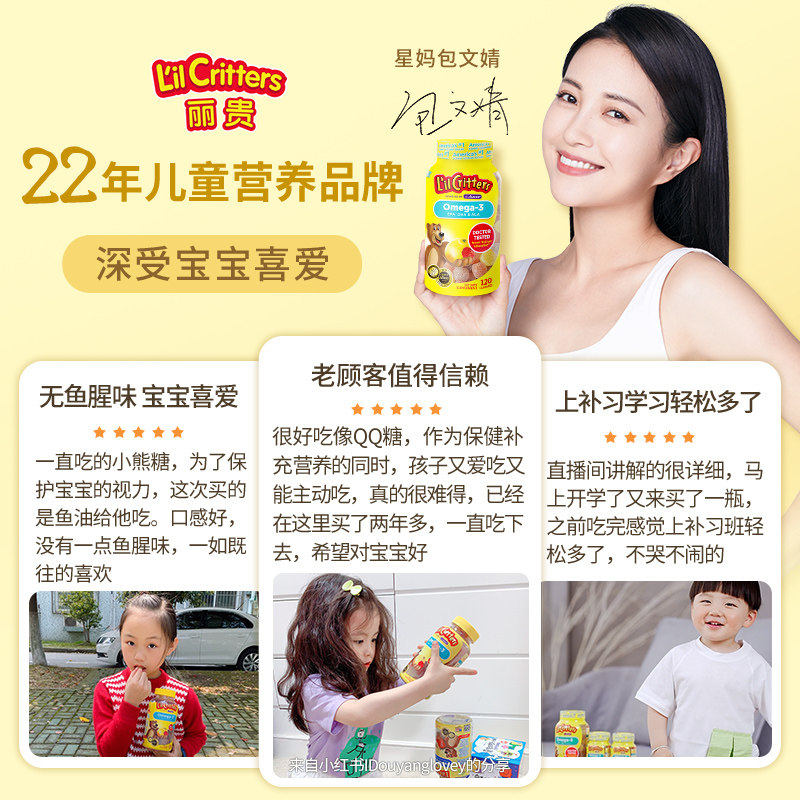 Ligui lilcritters gummy bear fish oil dha baby children imported omega3 fish oil 120 tablets