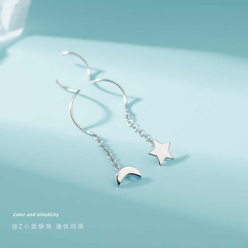 Miss Z Stars Moon Wave Ear Bracelet Women's Pure Silver Short earnecklace 2022 New wave 925 pure silver ear necklace short