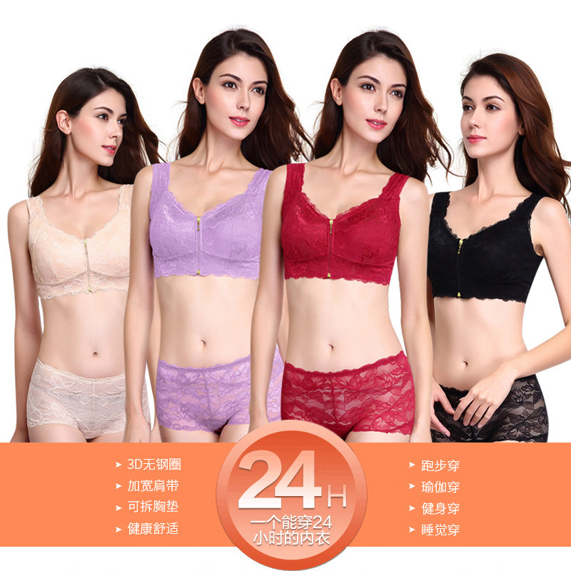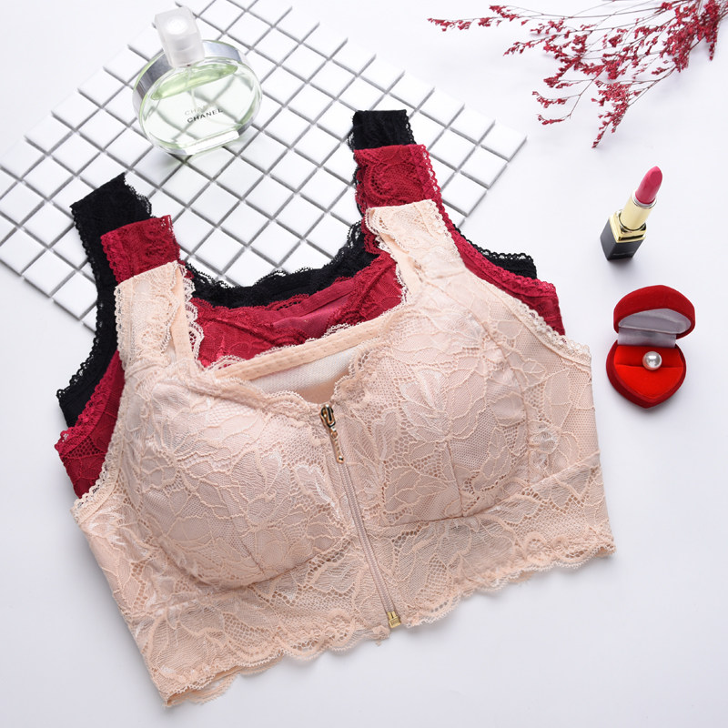 Front buckle zipper large size full cup breast without rims sleep beautiful back bra sexy gathering underwear women thin