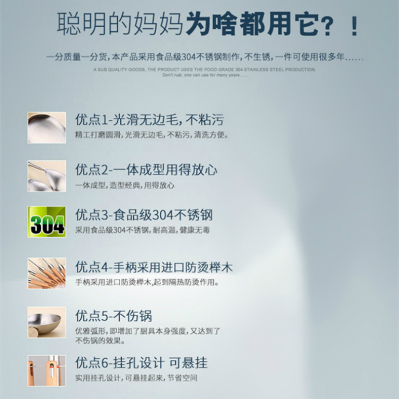 Beech wood handle anti-scalding 304 steel soup porridge spoon 1 handle