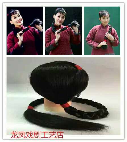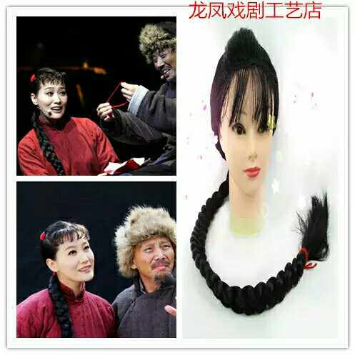 Drama Tiemei headdress dance performance braid wig Xi'er big braid headgear Anti-Japanese war maid wig braid