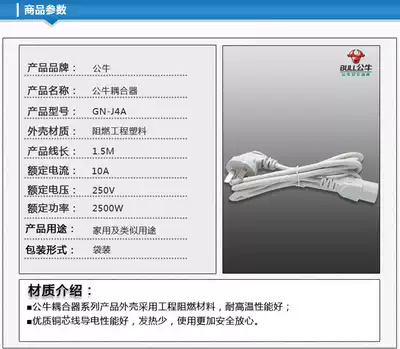 Bull power cord rice pot cooker electronic pressure cooker electric kettle power plug cord high power cable three-hole electricity