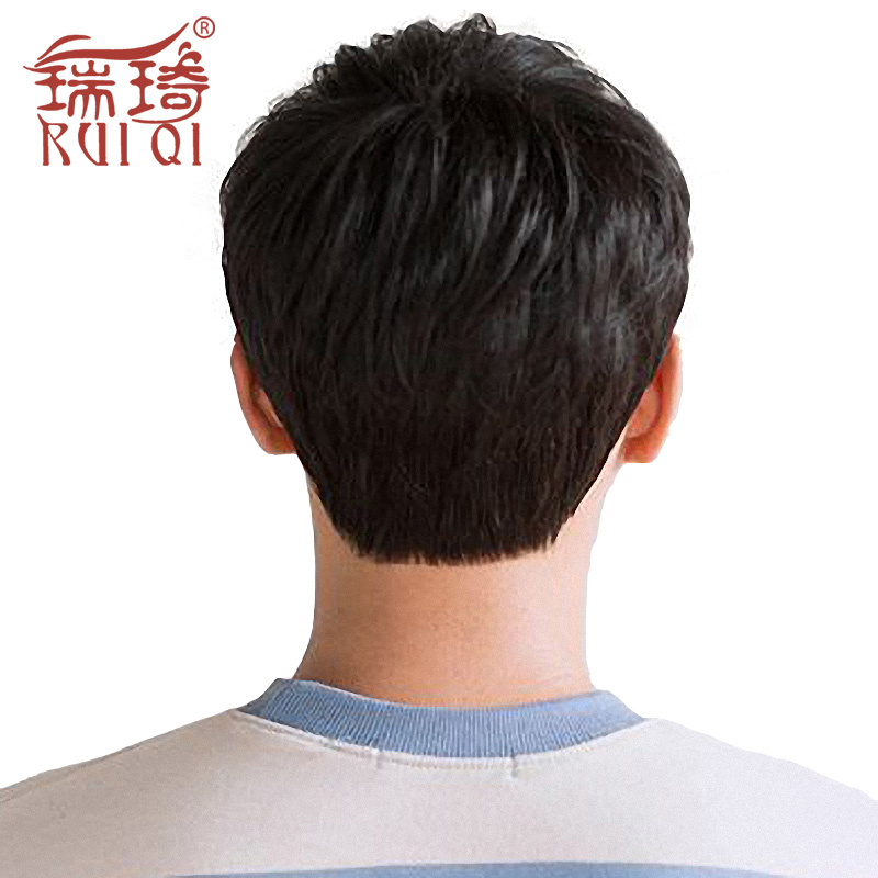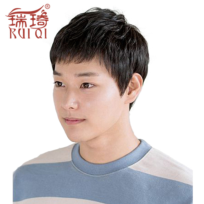 Wig men's short hair Korean handsome hand woven middle-aged men's wig real hair short straight hair natural lifelike whole wig