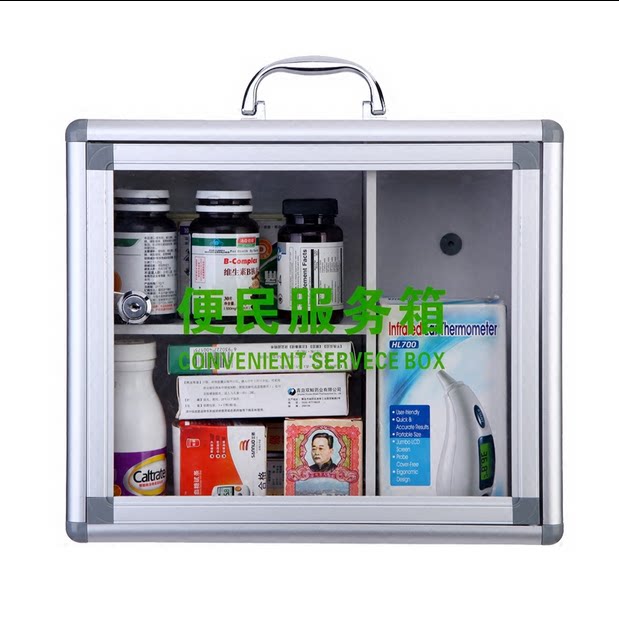 Convenience service box aluminum alloy drug container box Community bank factory transparent with locked handheld wall type medicine box