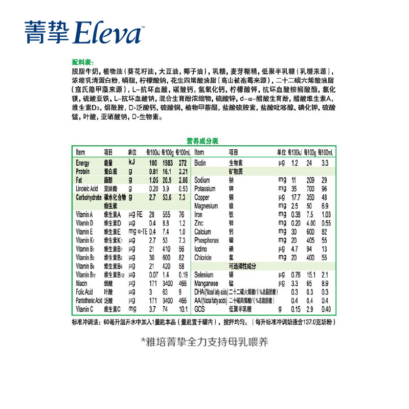 Milk food supplement nutrition