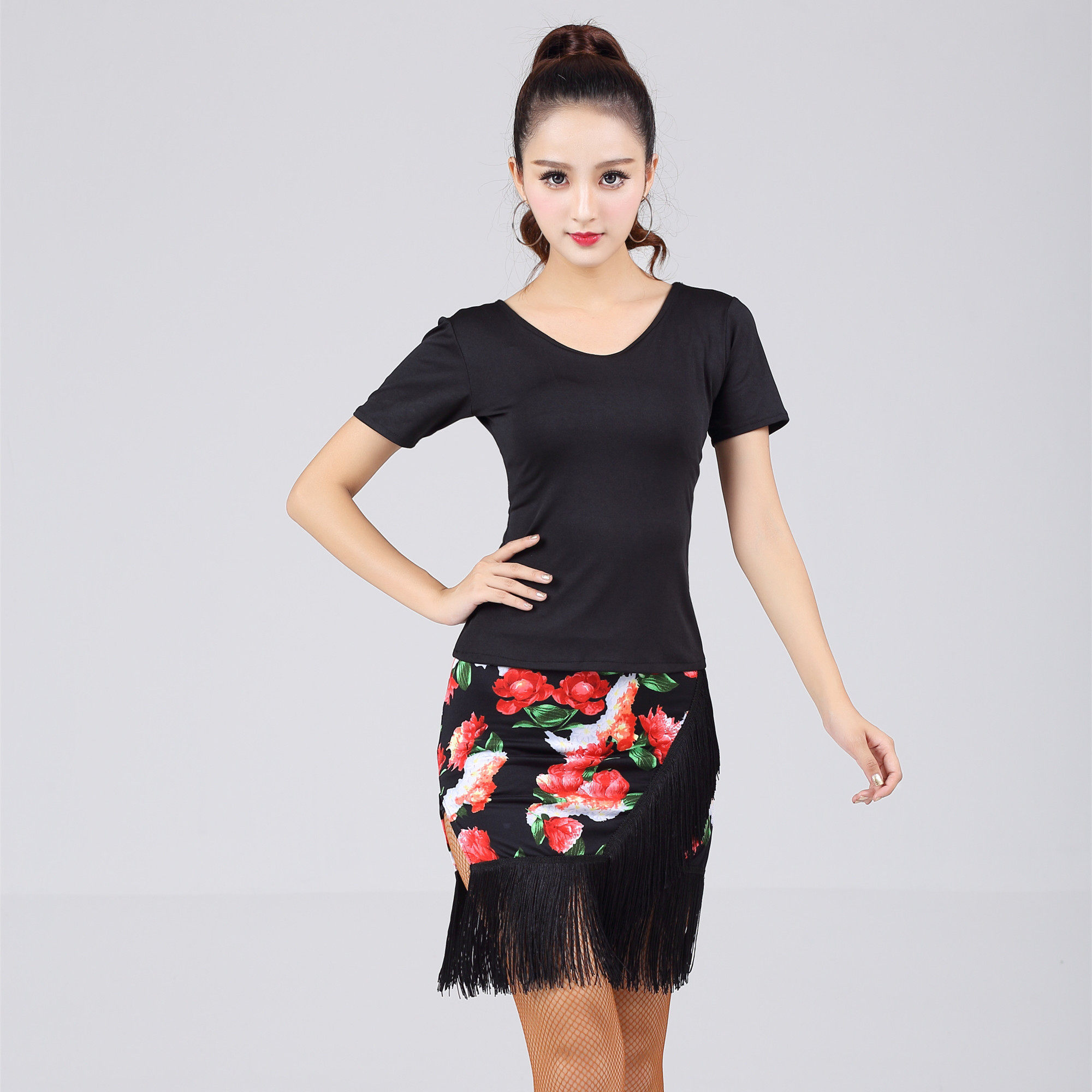 Latin dance Soodress lady Adult short dress Lower fitted half body dress Latin exercise dress Square Latin dance dresses dress