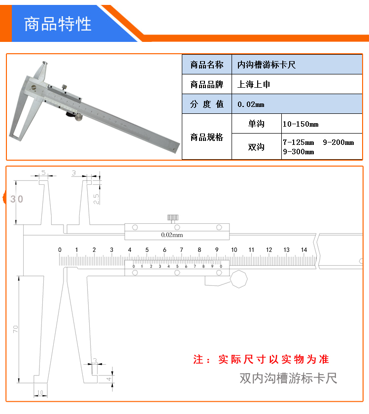 Shangshen inner groove caliper 9-150 inner hook groove caliper inner hole inner groove long claw inner diameter caliper vernier caliper