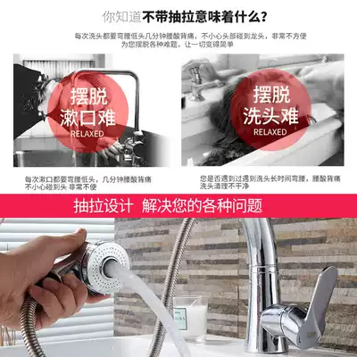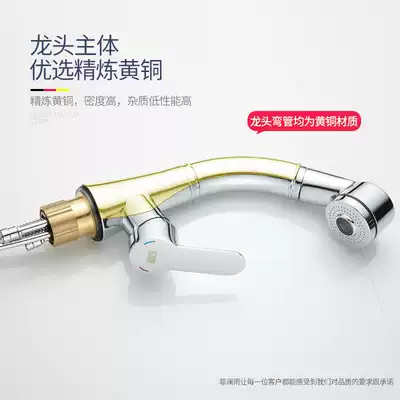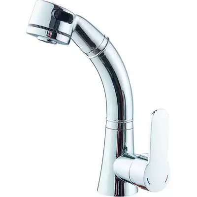 Powder room pull-out faucet hot and cold household telescopic rotating full copper single hole wash basin Basin lift