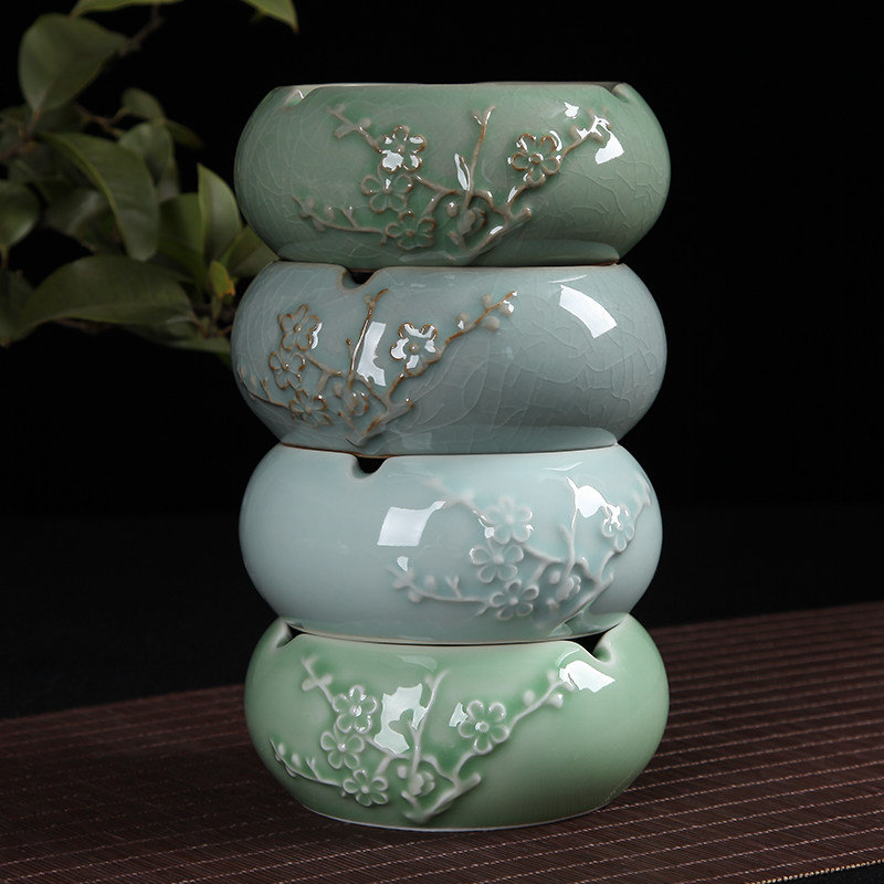 Royal Tea Green Porcelain Home Office Hotel Ceramics Cigarettes Ashtray Big personality Fashion creative retro windproof Smoke cylinders