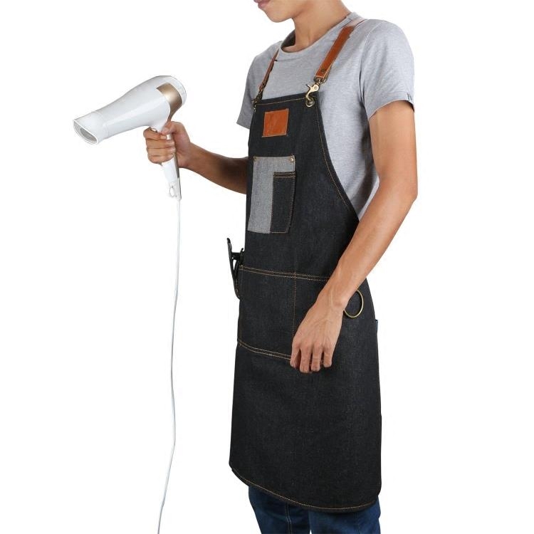 Ken Wei Wise professional beauty hair technician clothes denim cloth bronzed with technician apron workwear-Taobao