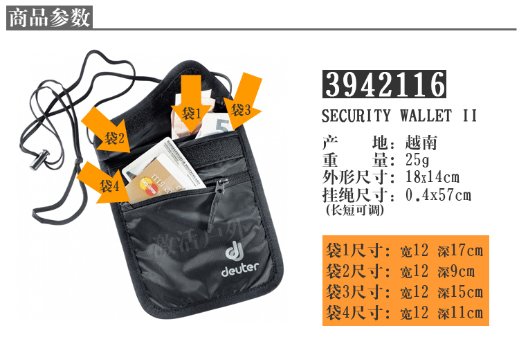 Deuter Dort Travel Document Passport 4 Mezzanine Secure Closets Wallet RFID Card Bag Mobile Phone Neck Hanging Bag