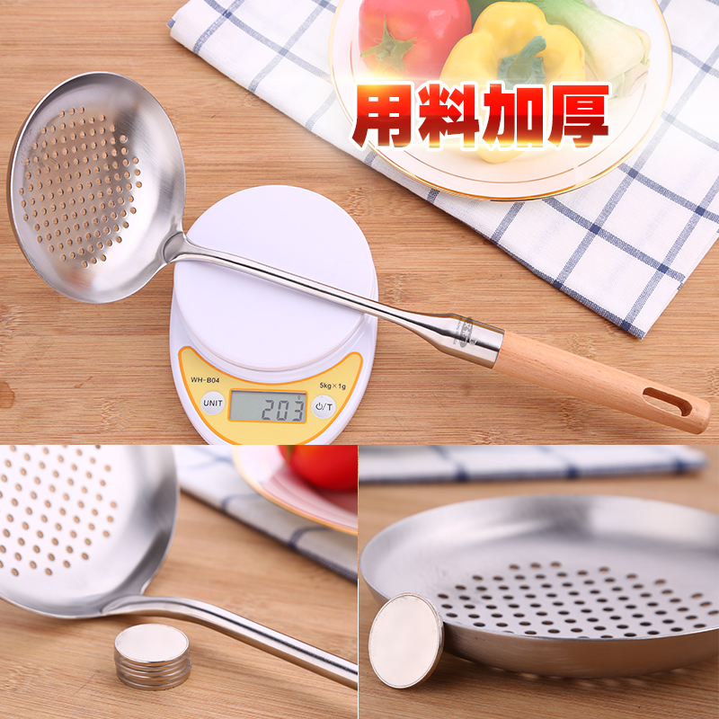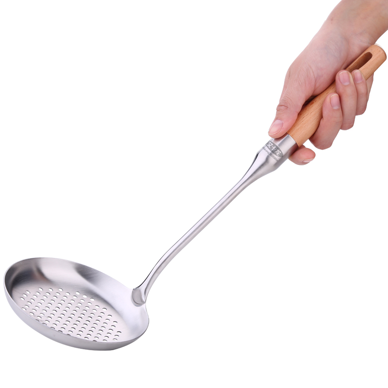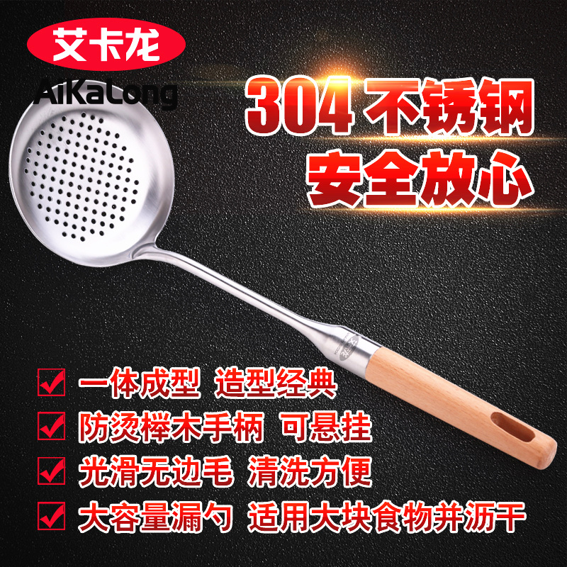 German ACLEN ecaron colander household kitchen 304 stainless steel strainman hedge large scoop fried anti-hot wooden handle