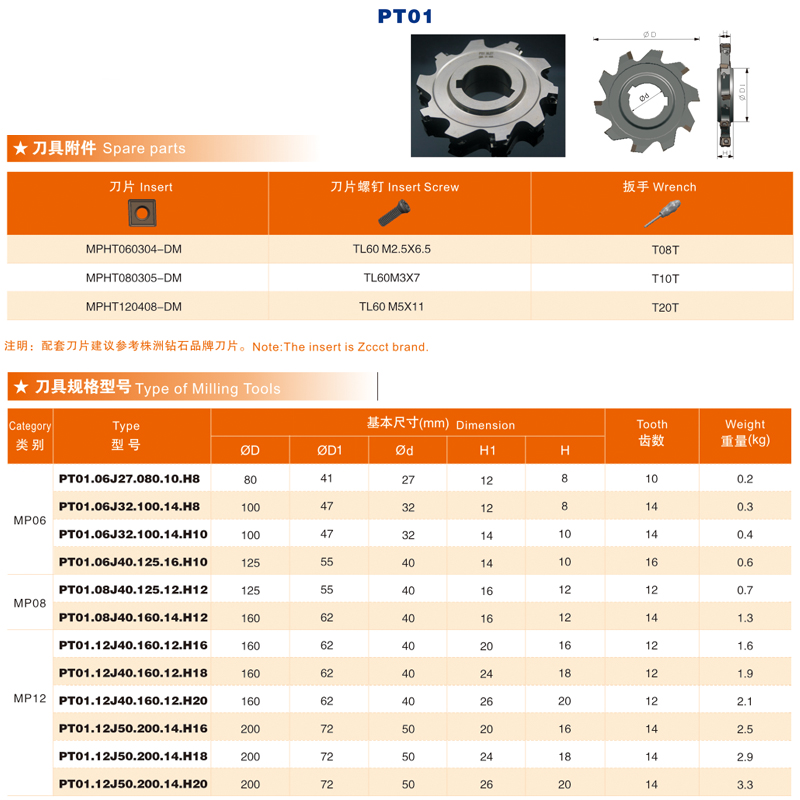 Zhuzhou Shengda PT01 series CNC high precision three-sided edge interface 27 to 50MM milling cutterhead reference SMP03