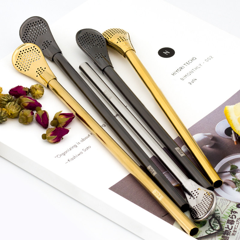 Creative filter straw spoon 304 stainless steel environmental protection portable metal drinking pipe scented tea recycling use tea drinking artifact
