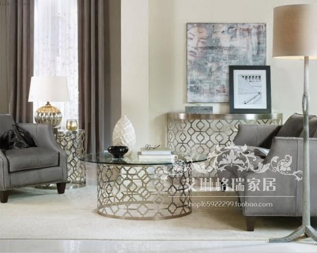 American Countryside High-end Stainless Steel Glass Round Table Coffee Table Edge A Few Genguan Table Creative Designer Tea Table