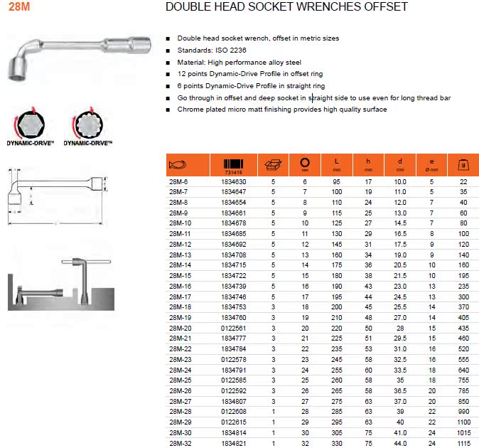 Bahco Metric Hex Torx Socket Wrench 8mm 28M-8 1834654