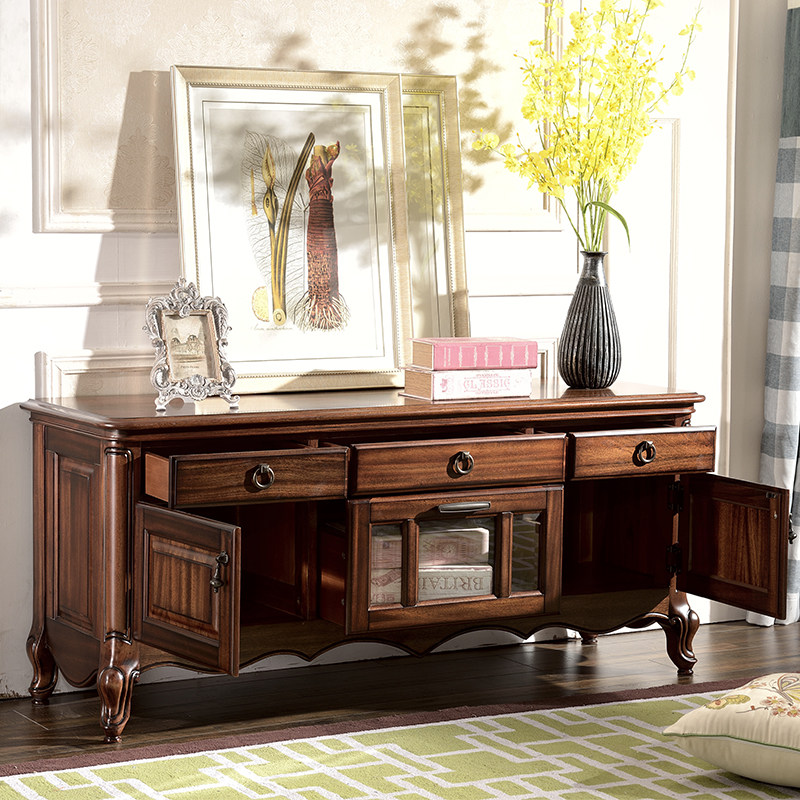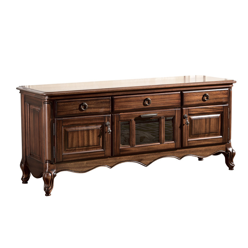 Gupo all solid wood black walnut TV cabinet small apartment bedroom furniture simple and complete retro American country
