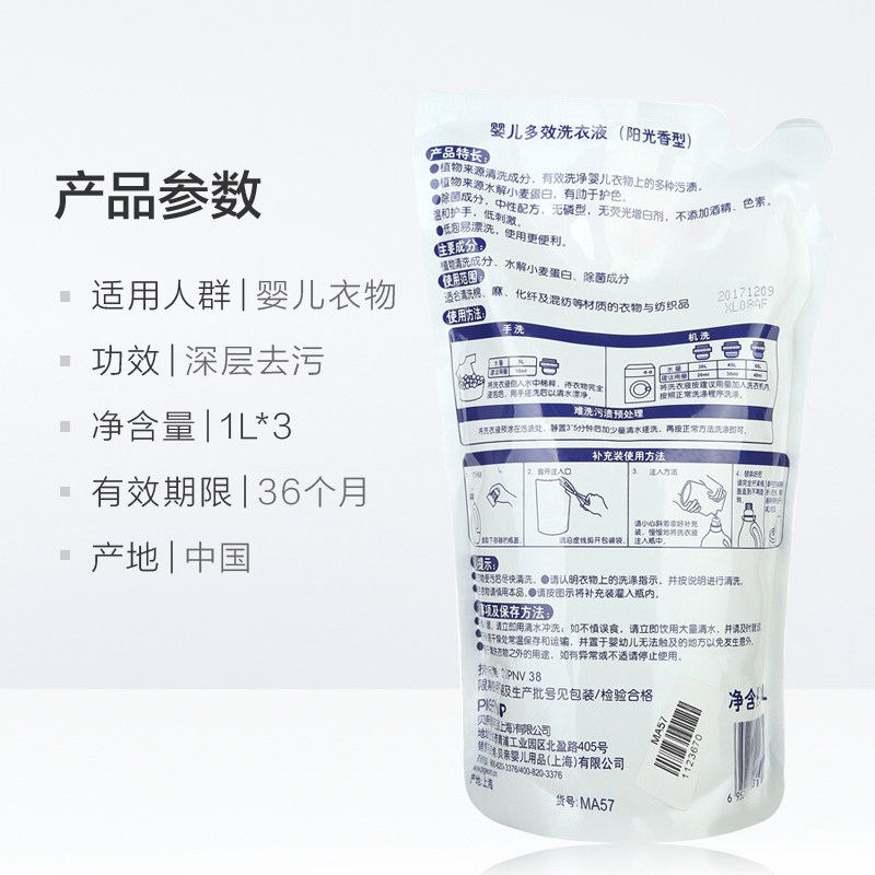 Pigeon Bei Pro Baby Laundry Detergent Baby Multi-Effect Laundry Detergent 1L*3 Bag Phosphorus-free no fluorescent brightener