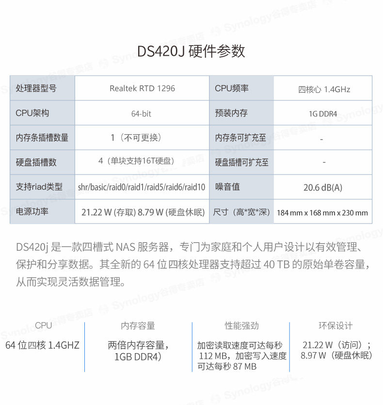 Synology Synology DS420j Enterprise Class Server NAS Network Cloud Storage Network Disk Home Private Cloud Disk Network Storage Enterprise Class Office Shared Qunhui Server