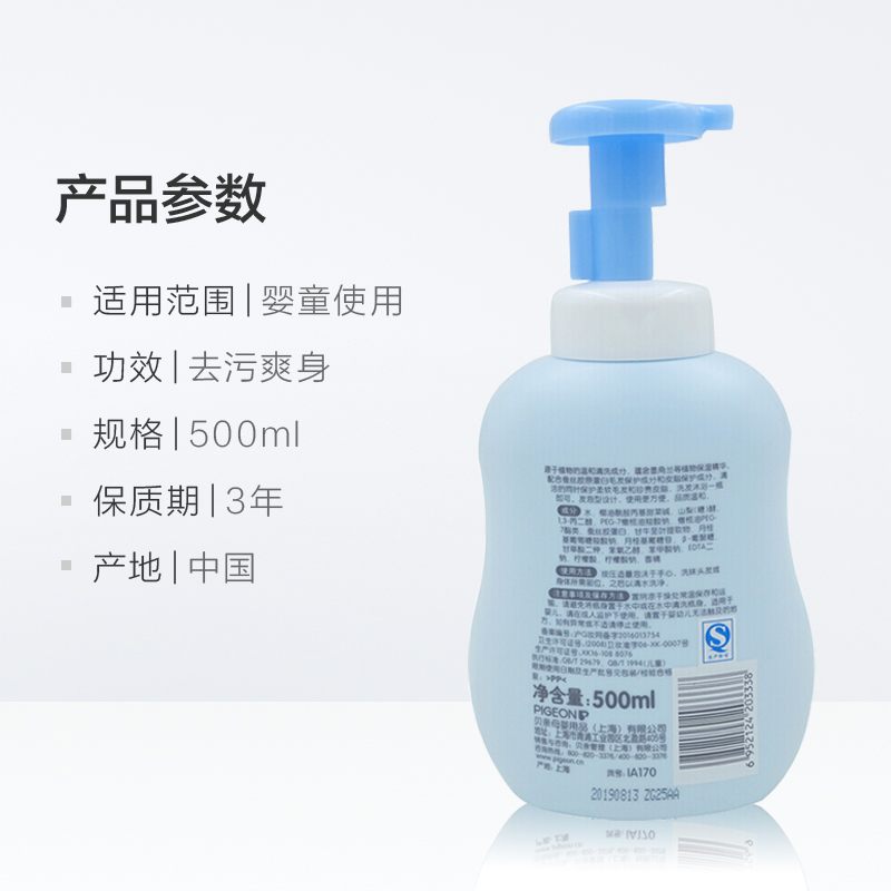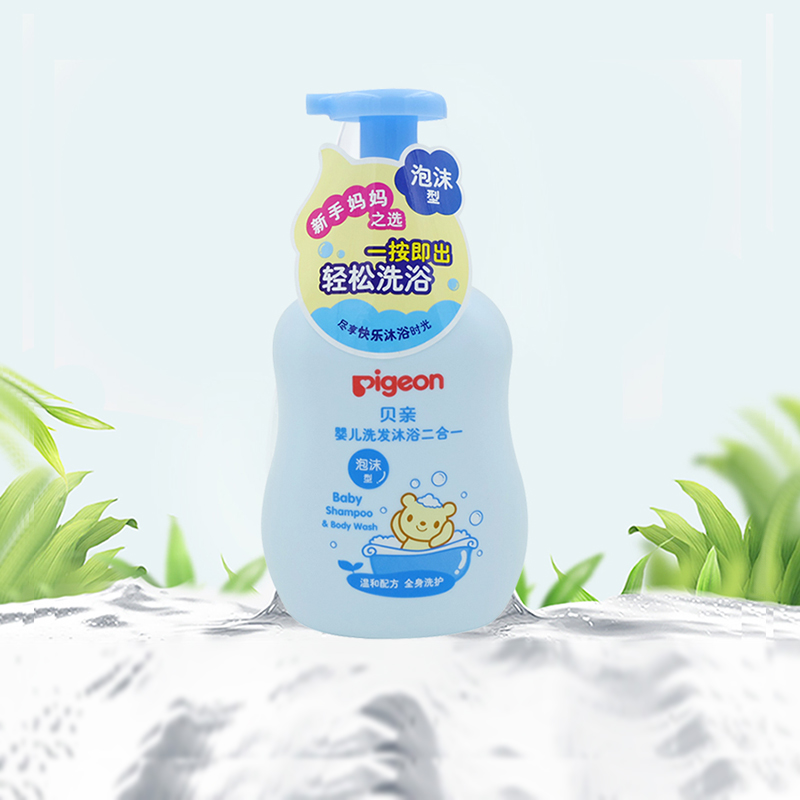 Pigeon Beichen Baby children's basic shampoo Shower gel Foam two-in-one 500ml*1 bottle baby