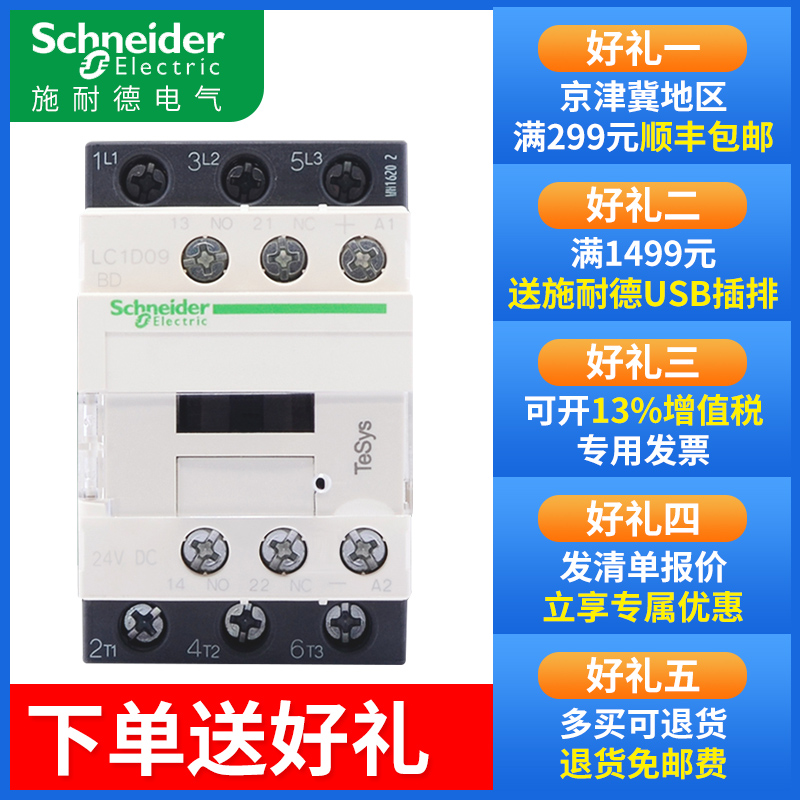 Schneider DC CONTACTOR LC1D09BDC FDC MDC 24VDC 110VDC220VD three-phase switch