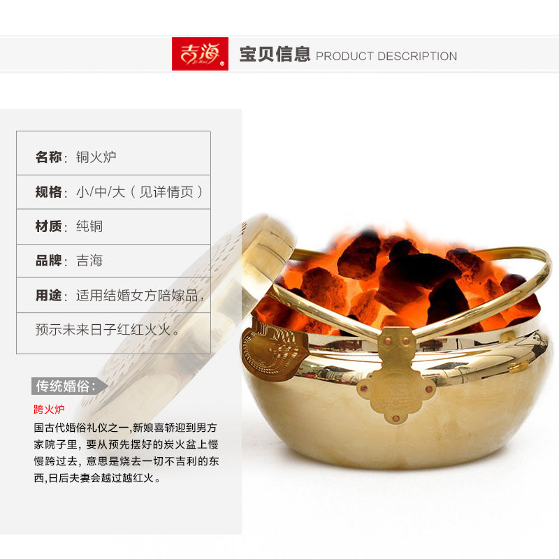 Traditional wedding supplies copper stove wedding copper fire rush wedding fire copper fire fire hand stove Wang pot stove dowry