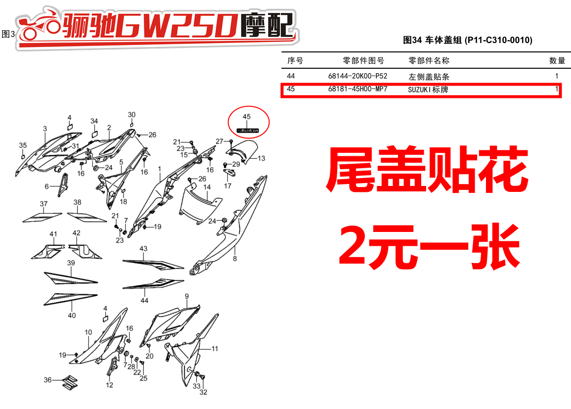 WINDSHIELD STICKER 68861-20E70-MP7 REAR COVER STICKER 68181-45H00-MP7ABS LABEL (SILVER) ABS SIGNAGE (SIL)