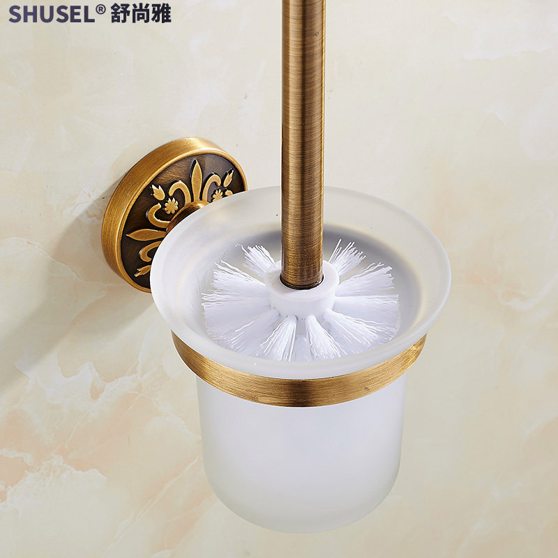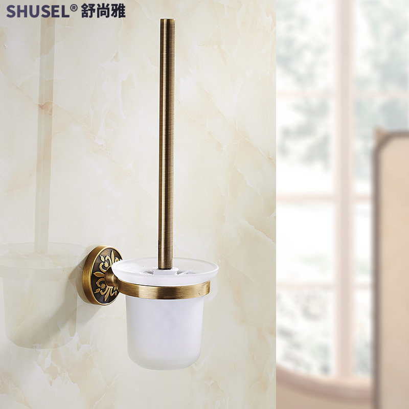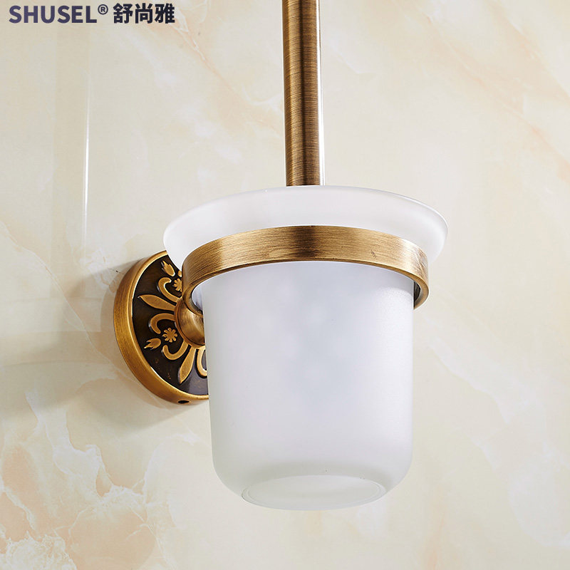 Antique toilet brush rack European-style wall hanging space aluminum toilet bathroom toilet brush set free perforated toilet brush rack