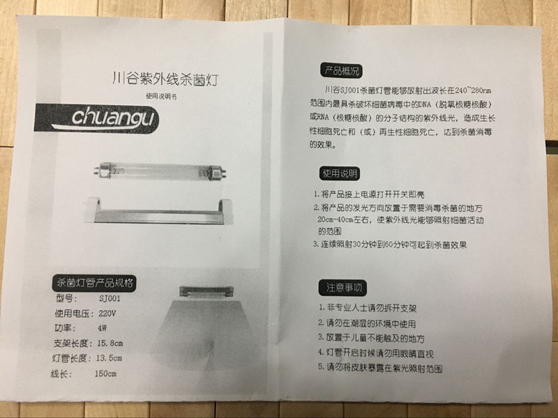 Sichuan Valley small ultraviolet bottle sterilization lamp TUV4W pet cage bowl chopsticks shoes purification lamp set