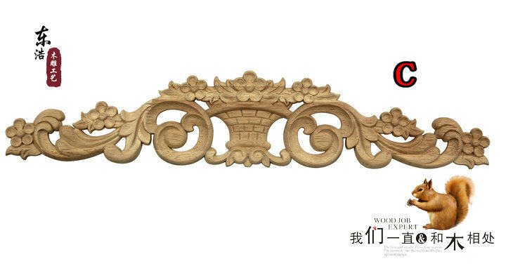 Wood carving solid wood long stick flower European style solid wood furniture applique with flower wardrobe decoration flowers Tung Yang wood carving applique flower slices-Taobao