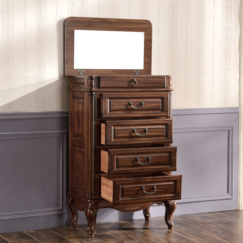 Gupo solid wood black walnut chest of drawers American style chest of drawers with vanity mirror American country retro bedroom furniture