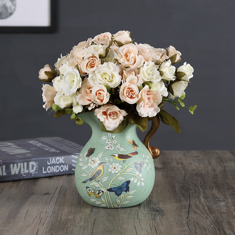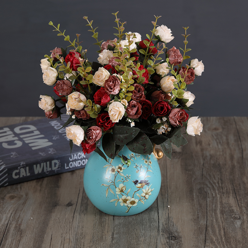Blue meets vase 3 bunch light purple noble concubine little rose blue meet vase 3 bunch gray blue noble concubine little rose blue meet vase 3 bunch light pink rose Golden Hibiscus vase 3 bunch