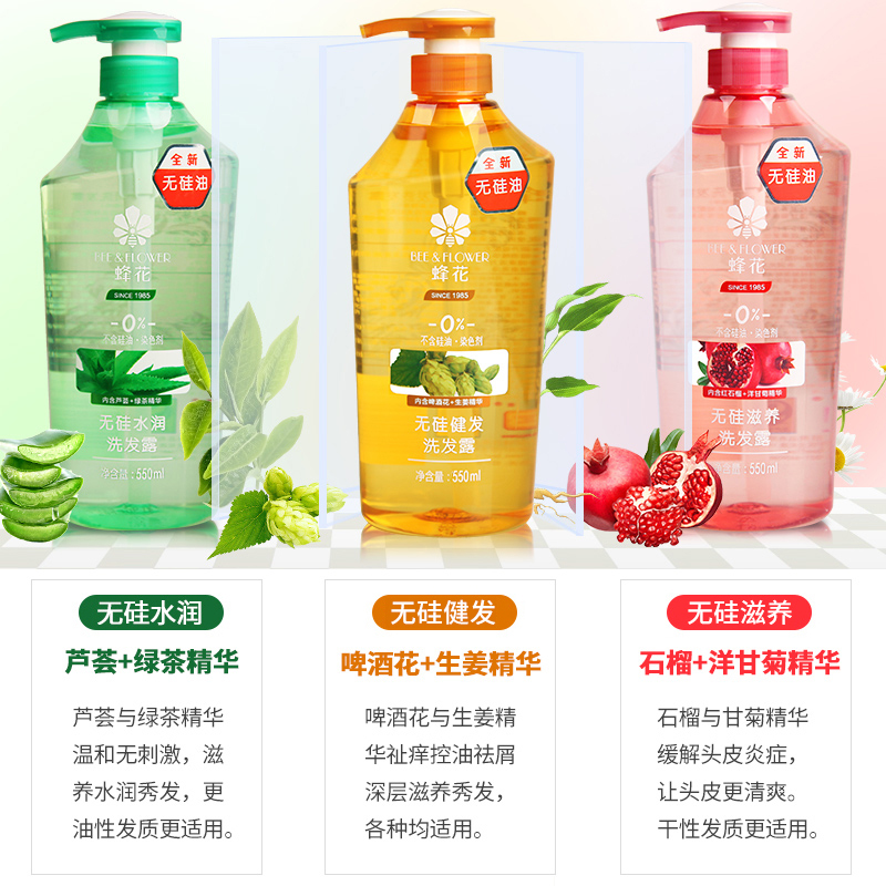 Bee flower hops shampoo Silicone-free shampoo Ginger hair men and women fluffy and supple de-oil oil control
