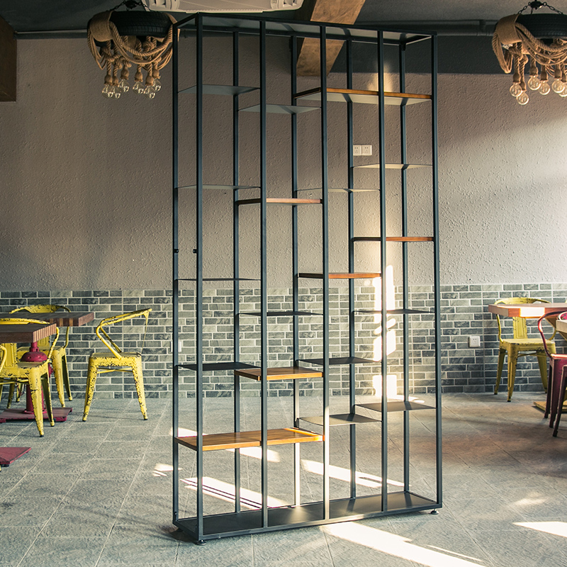 Dining Hall Industrial Iron Art Partition Screen Office Xuanguan Shelf Creative Solid Wood Bookshelf Loft Display Shelf