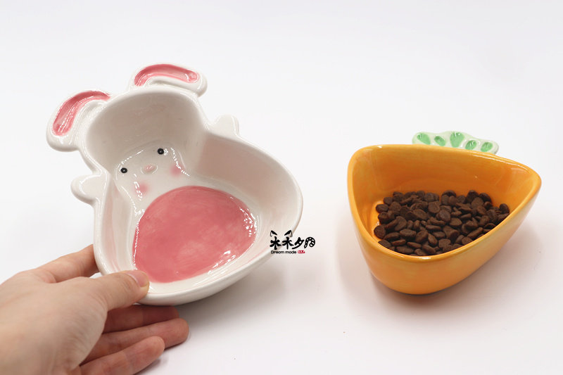 Wooden Su Cute Pet Bowl of Dog Catty Snacks Bowl of Carrot Rabbit Bowl Two Pieces]
