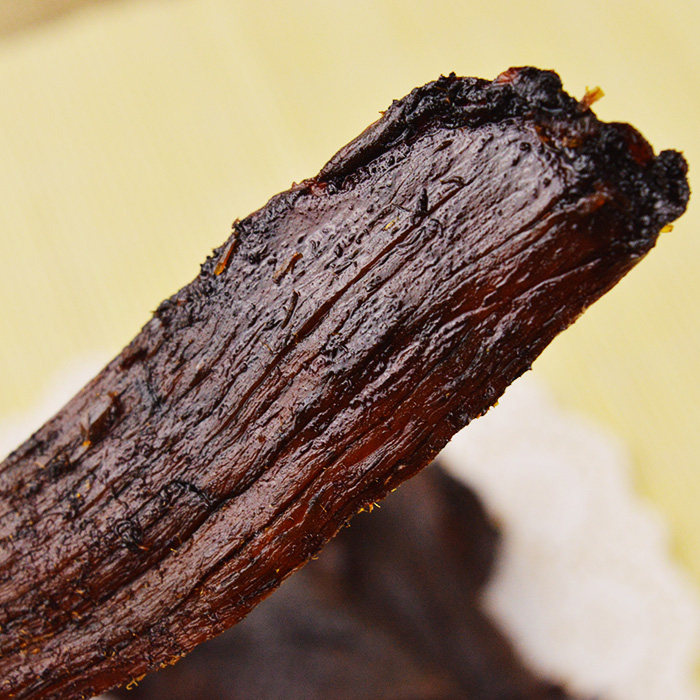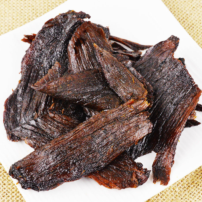 The beef jerky is dry.