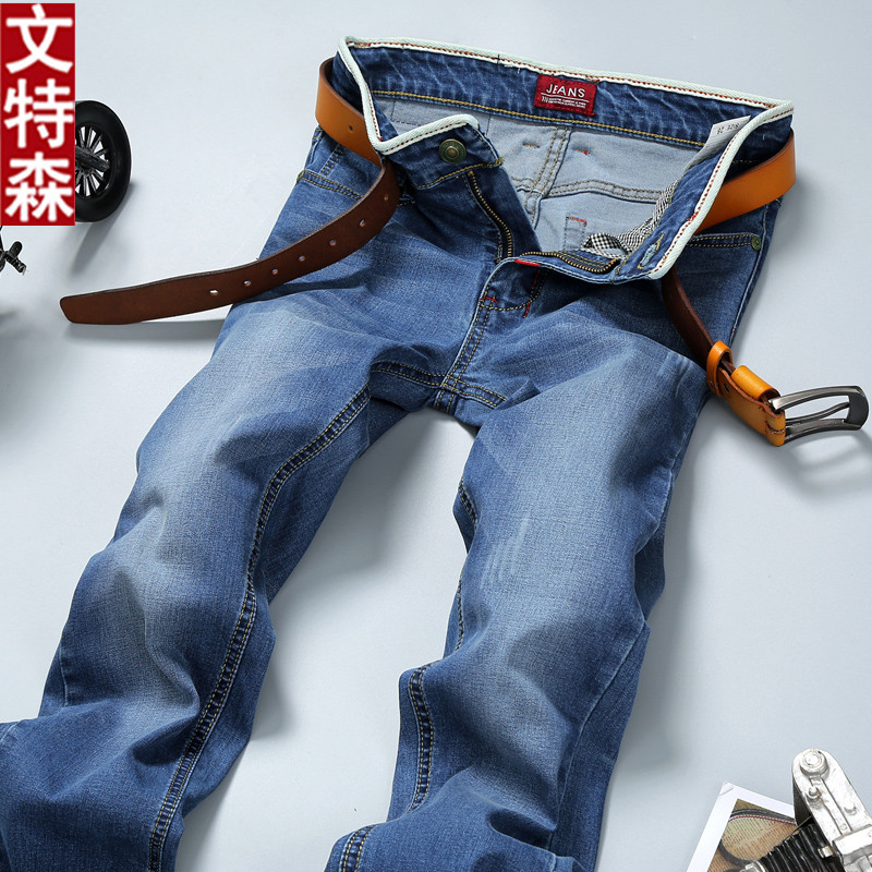 Fashion minimalist elastic jeans Men's youth Spring and autumn style Casual Long Pants Men's Straight Barrel Manmade Trend Pants Men