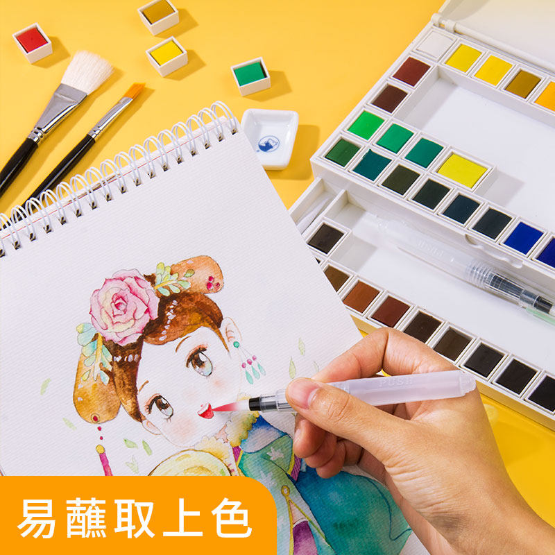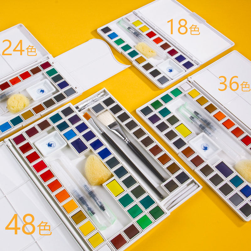 Marley solid watercolor paint set 24-color painting beginner 36-color 48-color introductory watercolor tool set Art materials Portable solid-state watercolor painting pigments Full set of art-specific