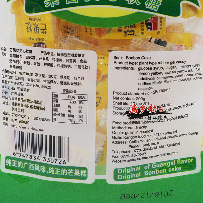 Conbo Mango Gui Round Coconut fruit cake 200g fruit jam QQ Soft Sugar Guilin Special production 2 bags