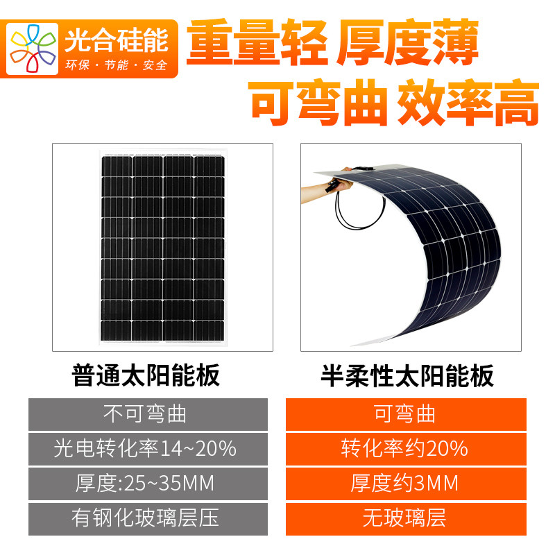 Photosynthetic silicon flexible solar panel 200w home photovoltaic power generation system RV folding charging