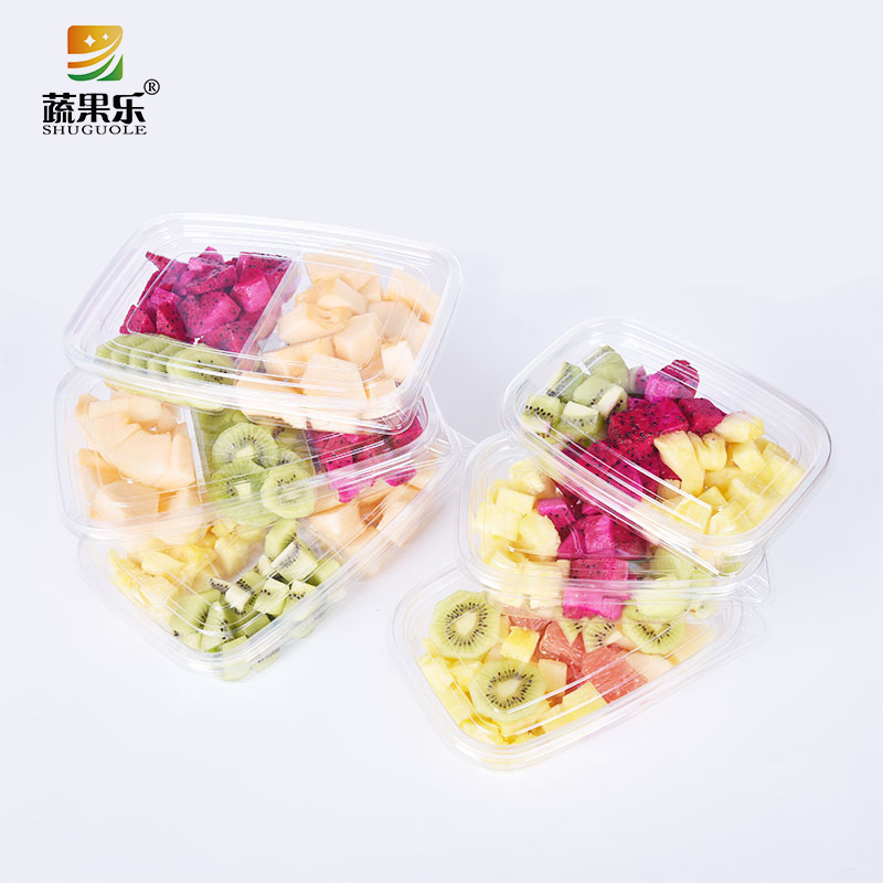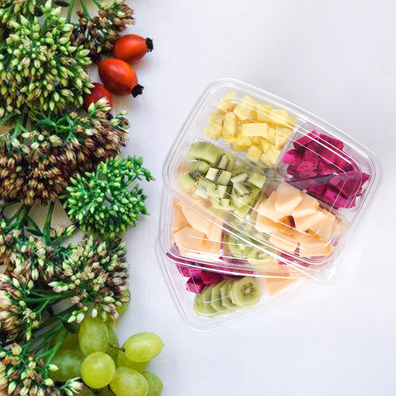 Vegetable and fruit Le 118 disposable food PET four grid platter fresh fruit cutting box Salad fruit fishing cooked food box manufacturer