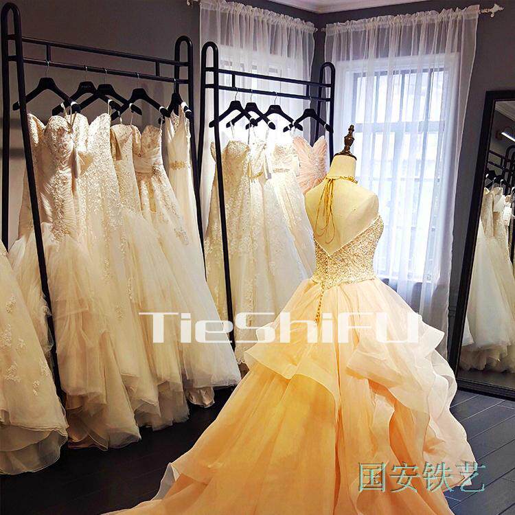 Wrought iron wedding display rack European high-end clothing store shelves Photo gallery hanging wedding rack Dress Cheongsam floor stand