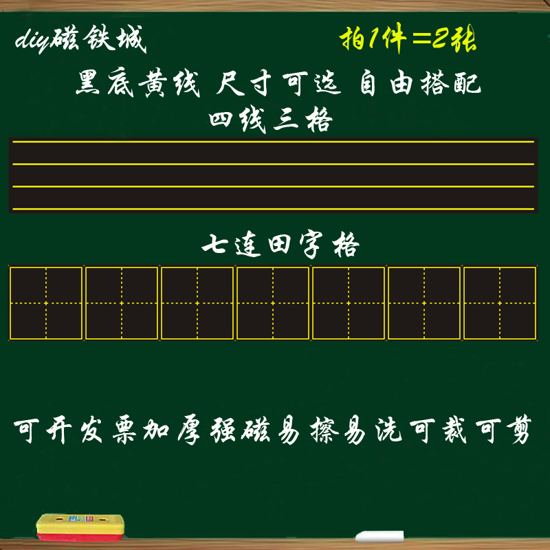 Tianzi grid magnetic English four-wire three-grid magnetic blackboard paste soft magnet teaching aids pinyin lattice blackboard