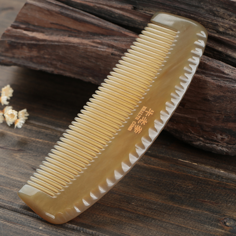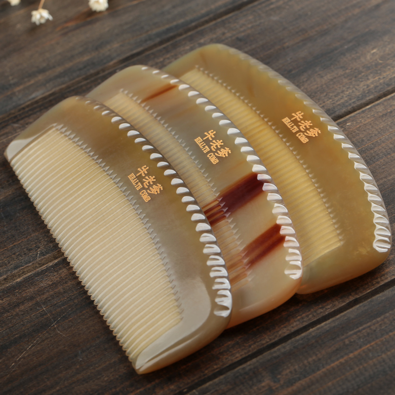 White water cow horn comb natural pure large long hair household Yak horn comb for women gift custom lettering
