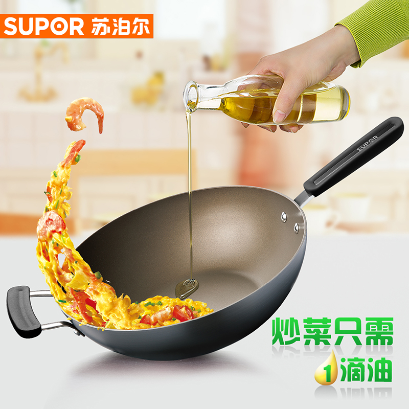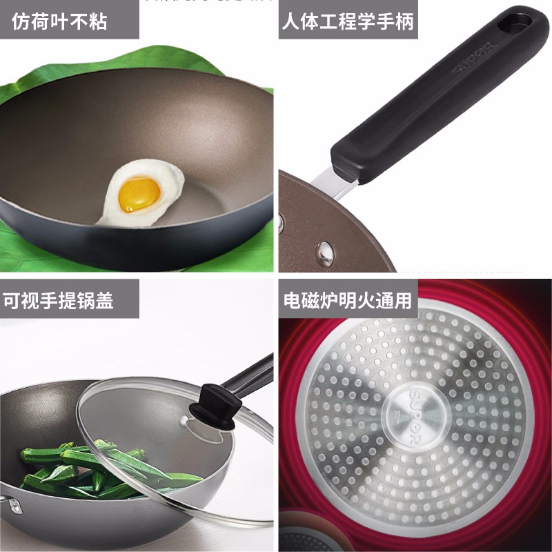 Supor wok Non-stick pan Household Zhenjing pan Fume-free multi-function coal gas stove Induction cooker universal