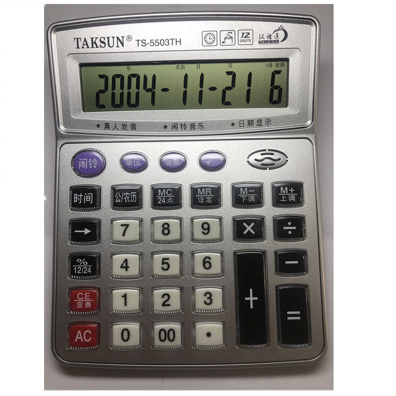 Dexin TS-5503 calculator 12-digit real voice computer large desktop transparent key large screen