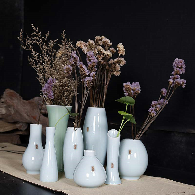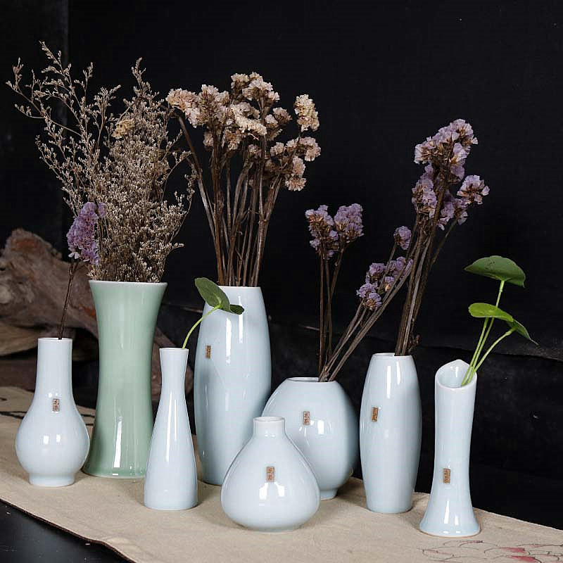 Boutique Dragon Springs Green Porcelain Flower Ware Ceramic Drying Vase Brief Retro Table Face Table Swing Piece Furnishing Hydroponic Creative Bottle