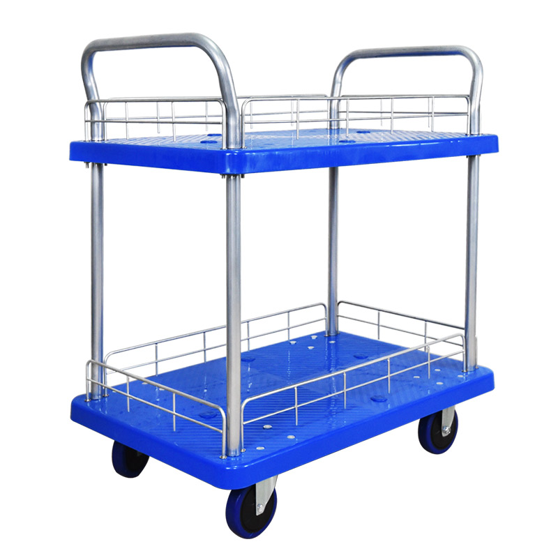 Silent folding double-layer flatbed trolley Large trailer Four-wheeled pull cargo trolley Warehouse trolley flatbed truck